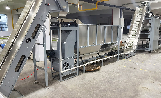 機(jī)組組成:本機(jī)組由進(jìn)料輸送機(jī)、勻葉振動(dòng)槽、風(fēng)選機(jī)、出料輸送機(jī)、機(jī)組集成控制系統(tǒng)組成。